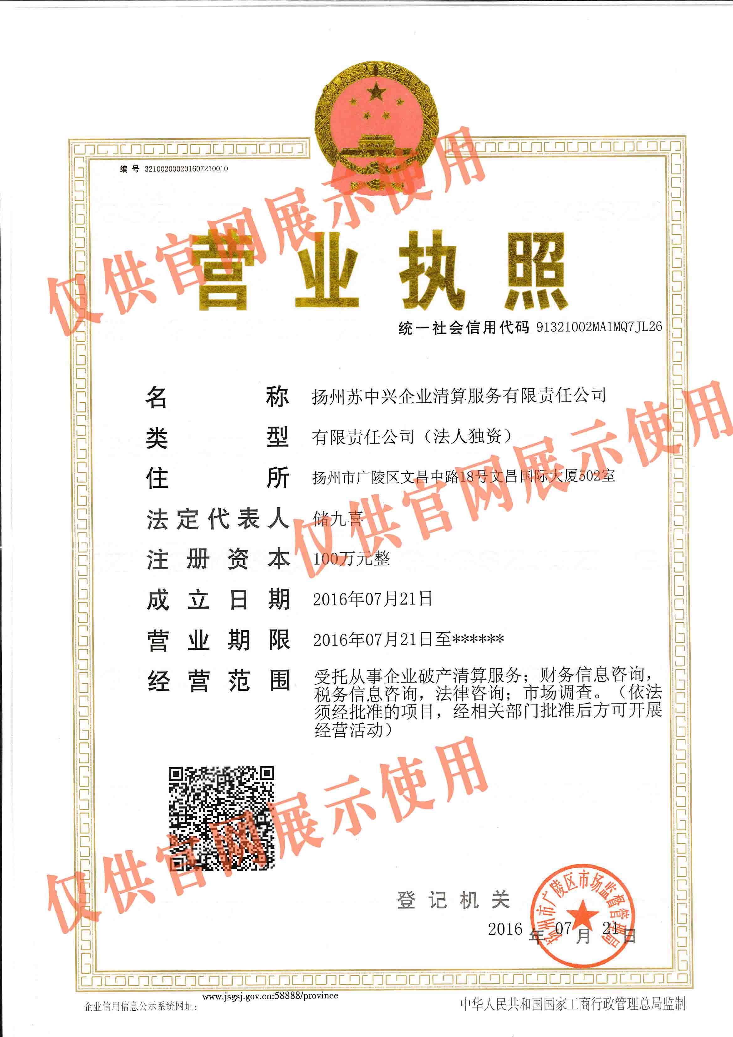 扬州苏中兴企业清算服务有限责任公司